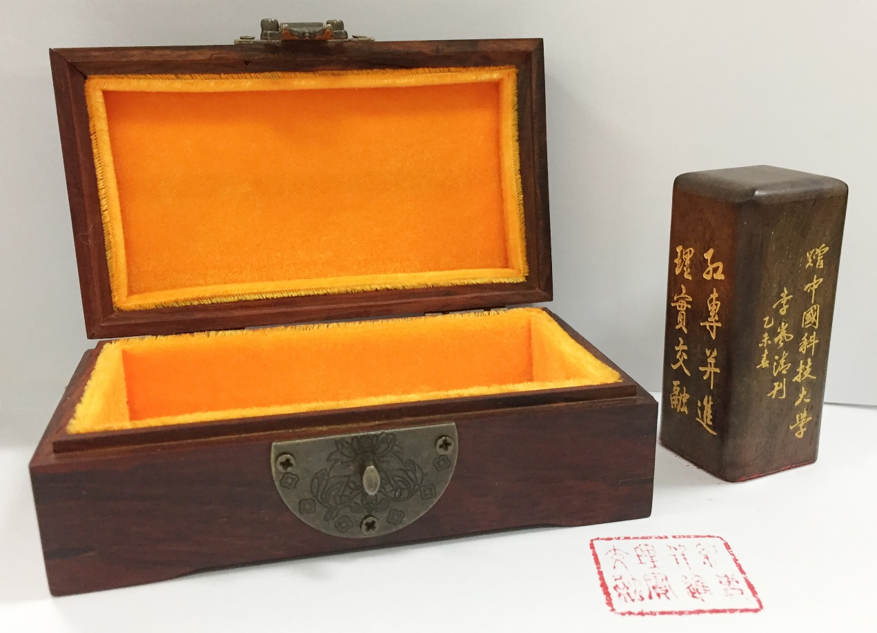 近日,学校收到李岚清同志惠赠的校训印章和《中国部分高校校训篆刻作品选》。印章为李岚清同志亲手篆刻,边款为“红专并进,理实交融”、“赠中国科技大学,李岚清刊,乙未春”。