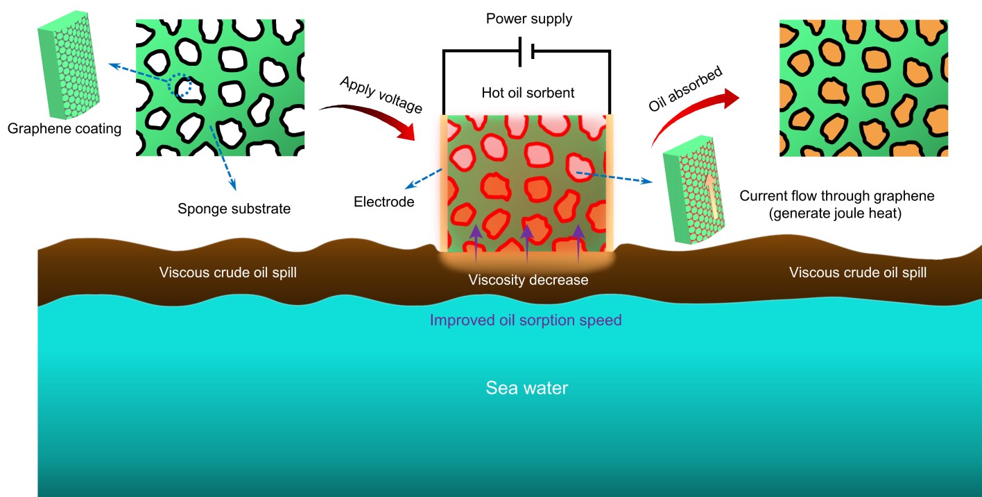 这项研究开创了浮油吸附材料设计的新路径,解决了以往多孔疏水亲油材料对高粘度浮油吸附速度慢的难题,提出的界面加热降低原油粘度的原创技术在石油化工业中的油水分离领域也有着广泛的应用前景。该研究提出的可加热经石墨烯功能化后的海绵组装体材料,经优化材料和结构可进一步降低材料成本和电能消耗,有望在今后应对海上原油泄漏事故处置中获得广泛的应用。