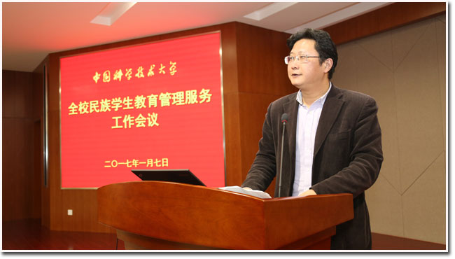 蒋一代表学校领导向专程前来参会指导的教育部民族教育司领导、专程参加会议并进行交流的北京邮电大学、合肥工业大学同仁表示衷心感谢和热烈欢迎,向长期从事民族学生教育管理服务工作的老师们表示由衷的敬意。他指出,我校自2006年招收新疆籍学生,为民族团结、边疆地区人才培养做出了应有的贡献。长期以来,学校对民族学生的教育管理服务工作非常重视,做了许多相关工作,取得了明显的效果。随着形势的发展,党和国家对新疆工作越来越重视,我们必须切实做好新疆学生班学生教育管理服务工作。蒋一要求各院系、各部门高度重视民族学生教育管理服务工作,不断学习、借鉴、创新,不断积累相关工作经验,逐步摸索、完善教育管理办法,改进工作形式,注意工作技巧,把工作做得更好。他希望大家通过本次会议,总结过去的工作经验,聚焦学籍管理、预科生、学生家访、发挥内派教师作用等专题,开展深入研讨,提出切合学生实际和特点的管理办法,不断提高我校民族学生教育管理服务水平。
