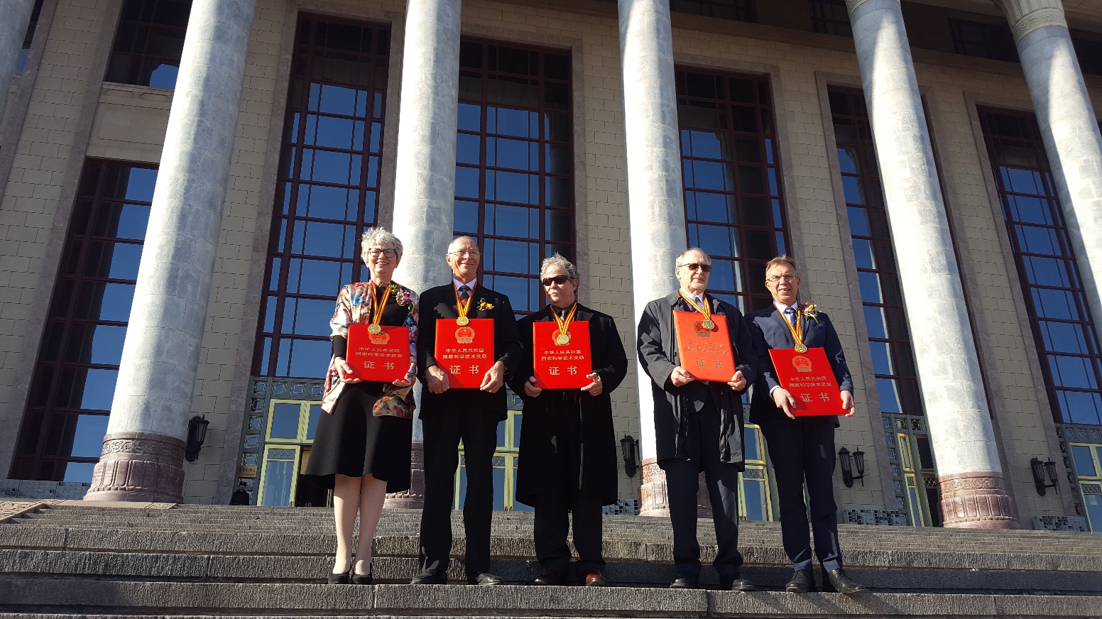 2016年度国家国际科技合作奖获奖者合影(左一为科瑟-赫英郝斯教授)