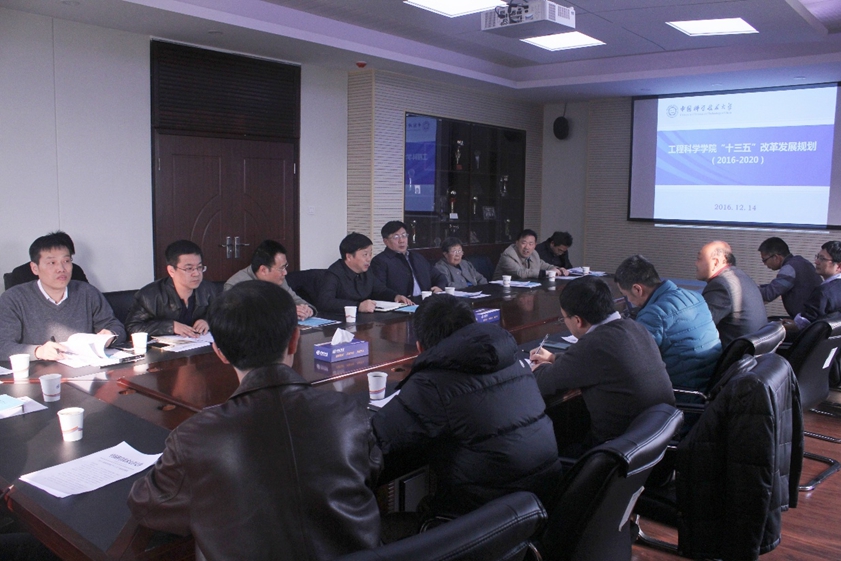 工程科学学院执行院长陆夕云代表学院汇报《工程科学学院“十三五”改革发展规划》,介绍了学院“十三五”发展目标、发展思路、建设举措和所需支持等。与会代表就学院科研团队建设、创新创业人才培养、学科交叉创新、深化科教融合、加强校企合作等方面进行了交流和讨论。