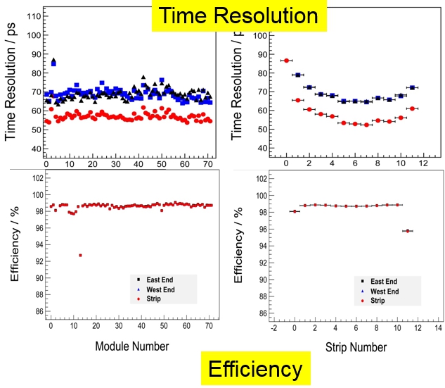 自2010年1月起,核探测与核电子学国家重点实验室中国科大部李澄教授领衔,联合重点实验室高能所分部相关同行,在国家自然科学基金重点项目支持下(No.10979003)开展了针对北京谱仪飞行时间探测器性能改进的MRPC关键技术研究,攻克了新型MRPC探测器设计及信号读出方法、高性能时间测量模块研制等关键技术。在2013年启动的中国科学院重大科技基础设施维修项目——北京谱仪端盖飞行时间探测器及主漂移室内室改造中,由大装置所在单位高能所承担前端电子学和系统集成工作,中国科大则分别由李澄教授和孙勇杰博士的团队承担全部端盖MRPC探测器的工程研制任务,由刘树彬教授和曹平副教授组成的团队承担所有高性能TDC插件和辅助电子学插件的工程研制任务,科大承担的工作是端盖飞行时间探测器实现1728通道70ps(其中电子学精度20ps)的高性能时间测量的核心部分,在国际高能物理实验中处于一流水平,极大地提高了BESIII的粒子鉴别能力。目前,探测器与电子学系统已经全部安装至北京谱仪BESIII中,并稳定运行参与物理取数。在2016年6月王乃彦院士等专家组进行的工艺测试评审中,给出了具有“世界领先水平”的高度评价。