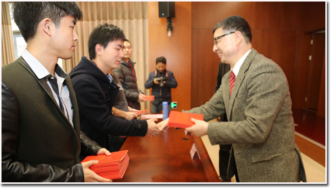 贾宁先生代表光华教育基金会向获奖同学表示热烈祝贺,表达了前来颁奖见到学校领导、老师和同学们的喜悦之情。贾宁先生指出,光华教育基金会自1989年成立以来, 捐赠1亿7千3百万元用于设置、发放各类奖学金,已有15万多学生受益。贾宁先生介绍,光华奖学金的设立和评颁有几个特色。一是鼓励学生热爱祖国、报效社会;二是强调少数民族同学获奖比例,希冀达成中华各民族之间的共同进步,和谐共荣的目标;三是到各设奖学校为获奖同学“送奖”;四是设奖不求回报,只愿获奖者今后在有能力的时候关爱需要帮助的人,实现社会和谐,薪火相传。最后,贾宁先生希望获奖同学忘记今天的荣誉,仰望星空,脚踏实地,努力攀登新的科学高峰,完成新的学习科研任务,在中华民族历史发展过程中书写自己光辉灿烂的一页。