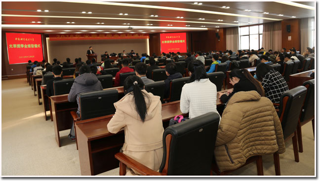 学生工作部(处)副部(处)长李峰在仪式上宣读了获奖同学名单。今年我校共有275名同学获得光华奖学金,其中本科生60名,研究生215名,获奖额度为每人1000元人民币。
