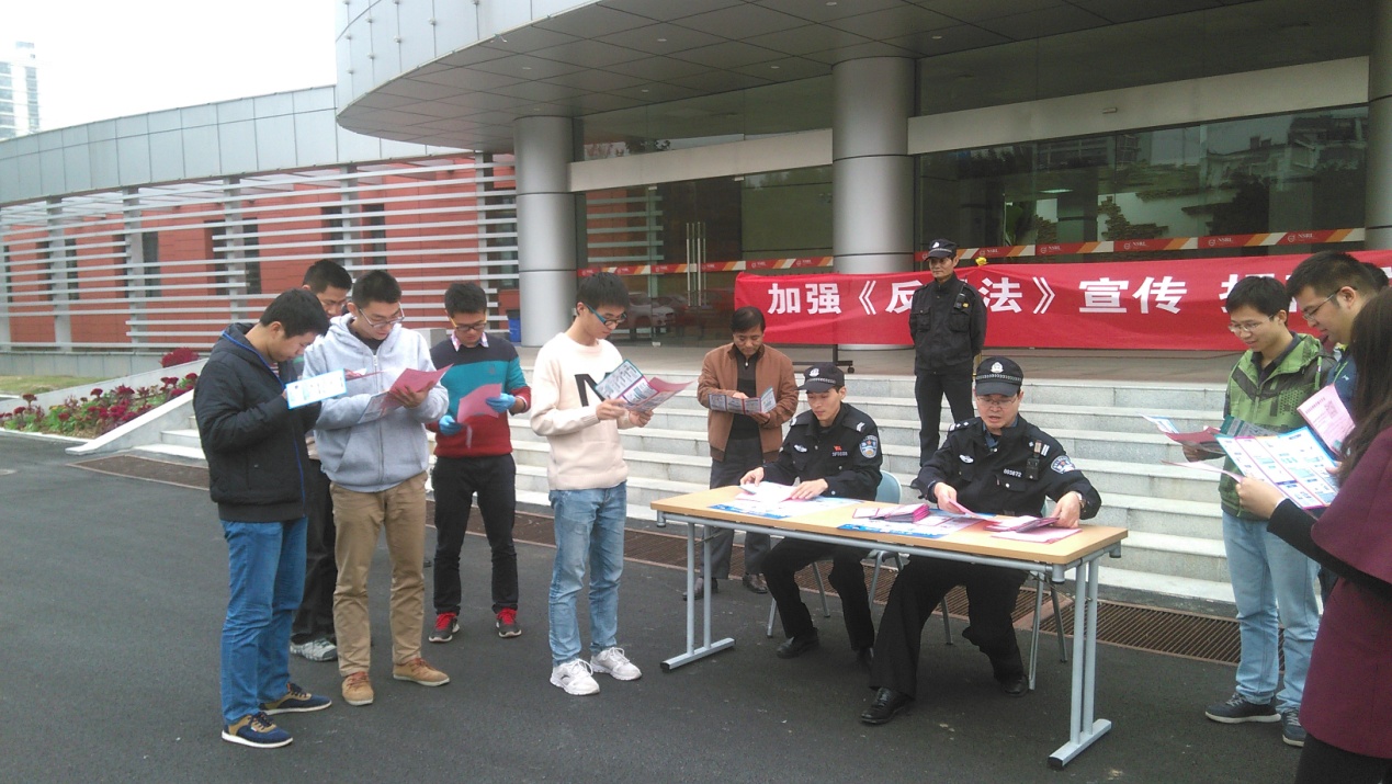 11月16日,实验室联合稻香村派出所干警,对师生进行了反恐、防欺诈宣传,切实提高师生员工对违法犯罪活动的辨识能力与防范水平,有效防范各类案件发生。