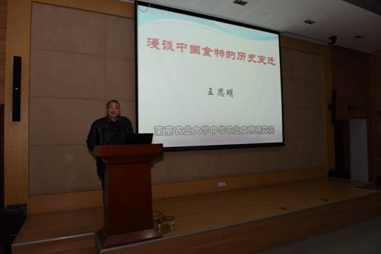12月6日晚,“魅力人文—兴业讲坛”系列报告会在我校东区资源环境楼学术报告厅举行。南京农业大学中华农业文明研究院王思明教授受邀为我校师生做了题为《漫谈中国食物的历史变迁》的精彩报告。人文学院科技史和科技考古系执行主任石云里教授主持了报告会。