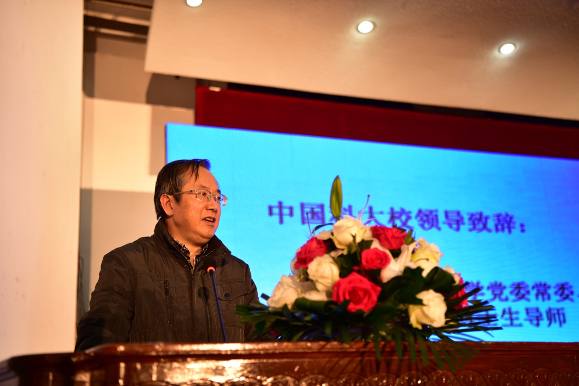 管理学院执行院长余玉刚代表学院致辞。他指出,本次金融高峰论坛的召开与上海金融校友会的揭牌,将成为科大金融领域里一个新的起航。他还介绍了我校与合肥市共建中国科大国际金融研究院的进展情况,指出研究院作为校地合作的又一典范,对我校发展和合肥建设具有重要意义。