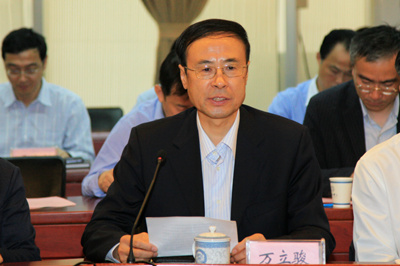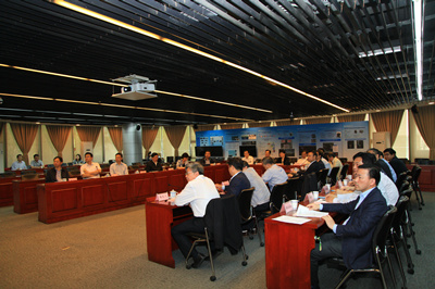 考察结束后,刘伟平在理化大楼一楼科技展厅与中国科大在校的领导班子成员、相关学院、国家实验室、重点实验室、职能部门负责人和教授代表进行了座谈,听取中国科大工作汇报。万立骏校长主持座谈会。