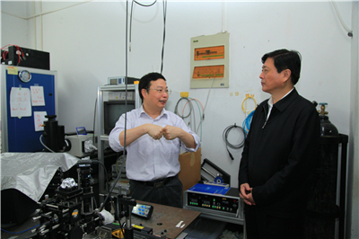 5日上午,刘伟平一行实地考察了中科院近地空间环境重点实验室、中科院量子信息与量子科技前沿卓越创新中心固态研究部、分子研究部以及光与冷原子研究部,听取了实验室负责人的工作汇报、实验室简要介绍等。在考察中,刘伟平详细了解了实验室的科技目标、创新成果、科研人员的党员人数比例、党员思想政治建设工作,以及如何将思政建设与科研工作相结合等。