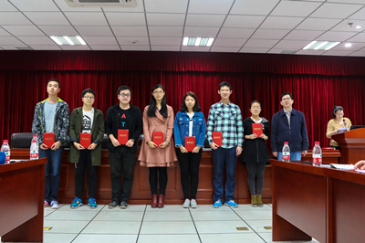 会上,杨保国宣读了《关于表彰2015-2016年度中国科学技术大学全媒体中心优秀成员的决定》。裘遒等18位同学获得2015-2016年度中国科大全媒体中心优秀成员表彰。杨保国、赵林分别为获奖学生颁发荣誉证书并合影留念。