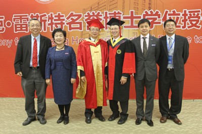 中国的名誉博士学位是经国务院学位委员会批准而授予的一种荣誉称号,旨在表彰有关人士杰出的学术成就和对中国的贡献,中国科学技术大学此前只授予了三位诺贝尔物理学奖得主,他们分别是:第三世界科学院院士、已故巴基斯坦物理学家、诺贝尔物理学奖获得者萨拉姆教授,美籍华裔物理学家、诺贝尔物理学奖得主丁肇中教授,著名物理学家、诺贝尔奖物理学奖获得者特霍夫特教授。里克·雷斯特是中国科大授予的第四位名誉博士。