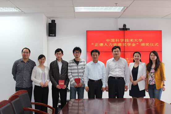 4月16日下午,中国科学技术大学“正德人力资源奖学金”颁奖仪式在管理学院912会议室举行。安徽正德人力资源咨询有限公司总经理管政、校学生工作部(处)副部(处)长尹红、管理学院党委书记曹威麟以及获奖同学参加了颁奖仪式。颁奖仪式由管理学院分团委书记朱洪超主持。