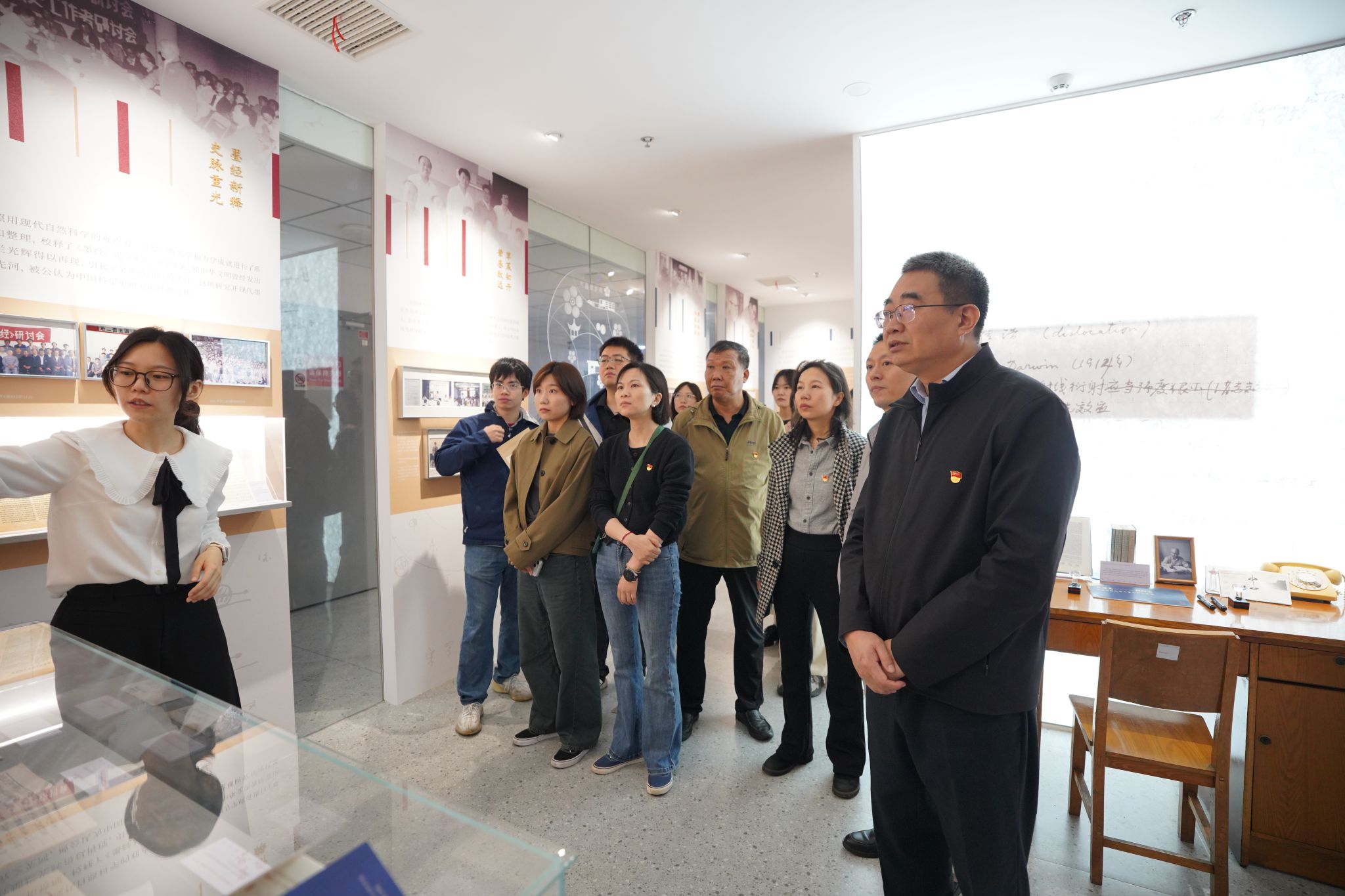 10月16日,党委宣传部党支部在支部书记王伟带领下,集体赴东区人文与社会科学学院,参观”从追光到问史--钱临照的科学人生与历史视野”主题展。人文与社会科学学院党委书记、副院长李雅清陪同参观。