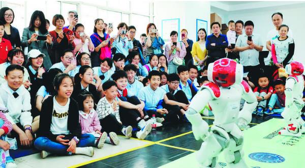 5月18-19日,为期两天的中国科大“科技活动周”举行,智能机器人表演、科普游戏等互动游戏,让市民走进神奇的科学世界。诸多科学研究装置对外开放,其中我国首台大型“反场箍缩磁约束聚变实验装置”,又称“科大一环”,首次在科技周期间亮相。图为观众们在观看机器人表演。 蒋瑜香/文 斗牛/图