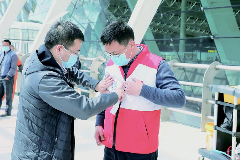 3月14日,中国科学技术大学附属第一医院(安徽省立医院)专家李明(右)、王东升分别从合肥和武汉出发,加入中国红十字会志愿专家团队飞赴伊朗,支援伊朗抗击新冠肺炎疫情。中新社 黄歆/摄