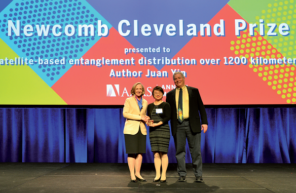 Juan Yin, professor at USTC, is the first author and chief designer of the payload on the quantum satellite. Yin accepted the award on behalf of the team.