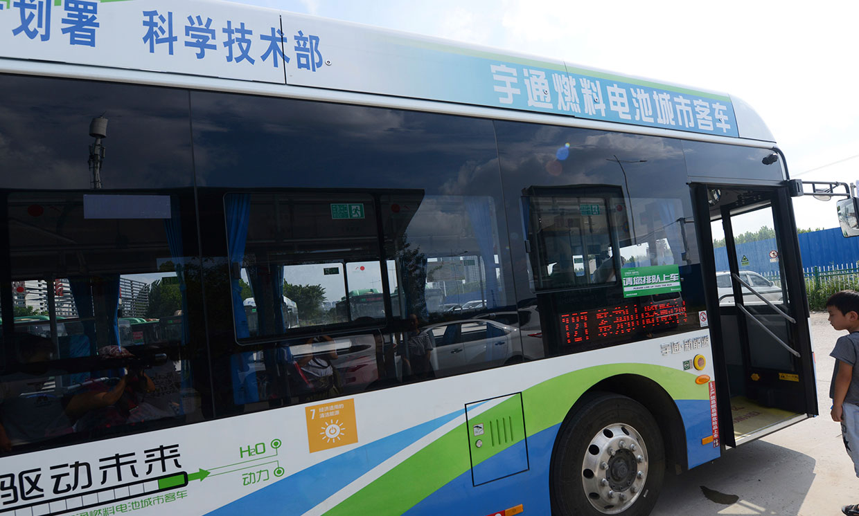 This bus in Zhengzhou, a city in central China's Henan province, is powered by hydrogen fuel cells./Photo: Imaginechina/AP