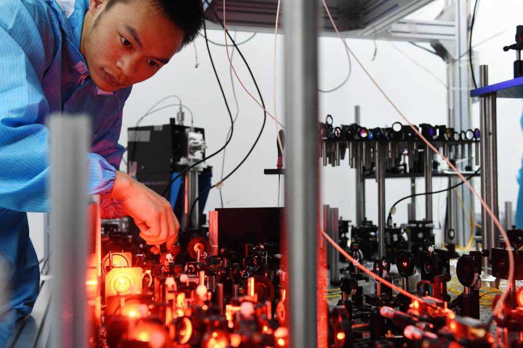 8月13日,在中科大中科院量子信息重点实验室固态量子中继研究室,科研人员进行单光子存储实验。记者 徐旻昊 摄