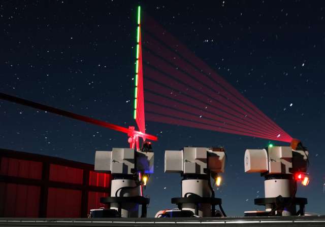 “墨子号”地星量子隐形传态实验,2016年11月摄于西藏阿里,星上绿色信标光将空中的薄云照亮。(中科院供图)