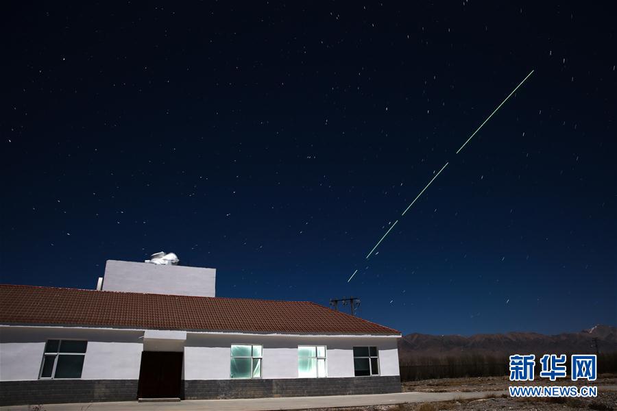 2016年12月14日,在青海德令哈观测站,“墨子号”量子科学实验卫星过境,科研人员在做实验(合成照片)。