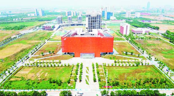 5月17日拍摄的中国科大高新校区建设现场。记者从市重点局获悉,该项目由中建五局安徽公司承建。目前,项目进展顺利,图书馆主体结构已封顶,正在进行二次结构施工。体育馆主体结构已全部完成,二次结构完成85%,钢结构全部完成。安装工程正在稳步推进,体育馆东西两侧幕墙施工进展顺利。