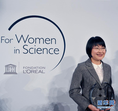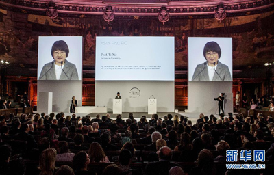 3月18日,中国教授谢毅在法国巴黎出席2015年度“世界杰出女科学家奖”颁奖仪式。