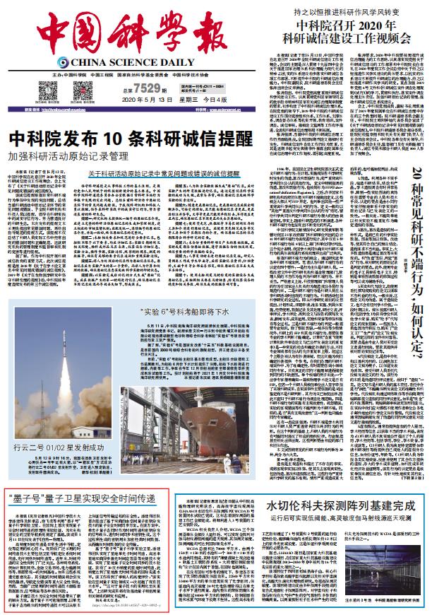 《中国科学报》 (2020-05-13 第1版 要闻)