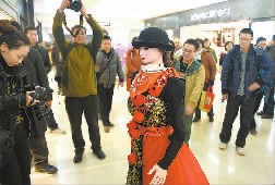 1月13日,机器人“可佳”在商场里引导顾客到指定商铺。