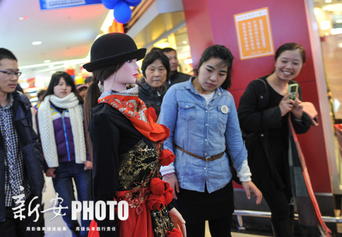 五官俊俏、身材姣好,戴着黑色礼帽的“可佳”在商场里一亮相就引起市民的围观。不过它可不是供人拍照的塑料模特,而是能说能走还能听懂指令的“全能”选手。