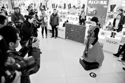 1月13日,在商场购物大厅内,导购机器人“可佳”吸引了市民和媒体的目光。据了解,该机器人由中科大团队研发,能够与使用者进行语音交互沟通信息,并在商场内把顾客带到他所想要到达的地方。 本报记者 杨竹 摄