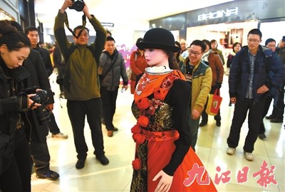 1月13日,机器人“可佳”在商场里引导顾客到指定商铺。当日,由中国科学技术大学自主研制的“可佳”云交互机器人首次进入安徽合肥一家大型商场提供导购服务。据悉,机器人“可佳”借助云平台等先进技术手段,突破了传统人和机器人对话的一对一模式,可同时为不同顾客提供购物咨询和引导服务,标志着“可佳”智能服务机器人研发进入实用化阶段。 (新华社记者刘军喜摄)