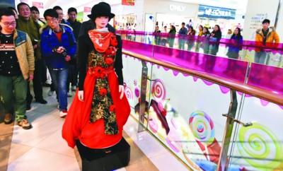 面对走出实验室接到的第一份工作,机器人可佳也是蛮拼的:它穿着黑红相间的华美礼服、头戴礼帽,打扮得落落大方。没有导轨,也不用电线,可佳在购物广场内款款移步,一块电池放上去,要跑几个小时才停下来歇歇脚。