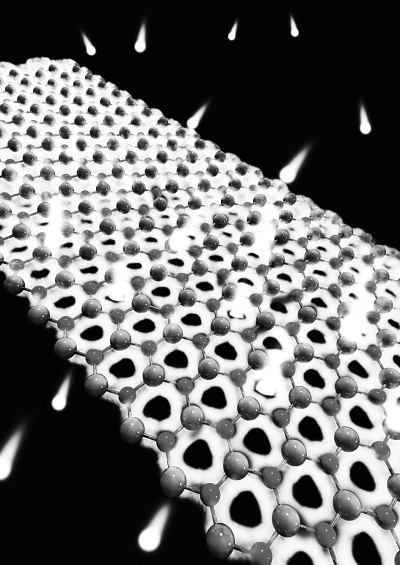 在该项工作中,中国科学家作出的核心贡献,是采用计算机模拟了二维纳米材料的微观孔隙结构,解释了质子穿透的机理,并计算得到了质子通过石墨烯类膜材料所需要的最小能量,进一步对该过程给出了定量化的描述。