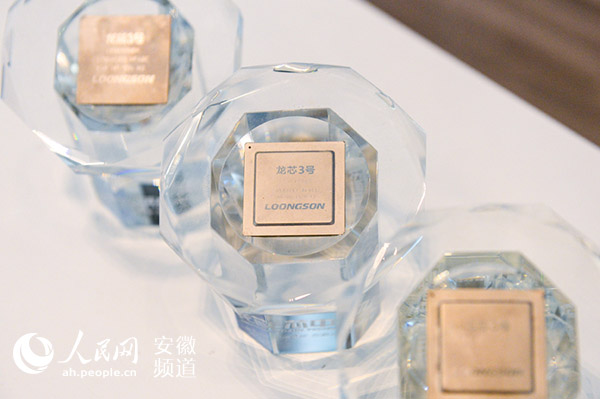 中科大先研院内展示的自主研发芯片——龙芯3号。苗子健摄