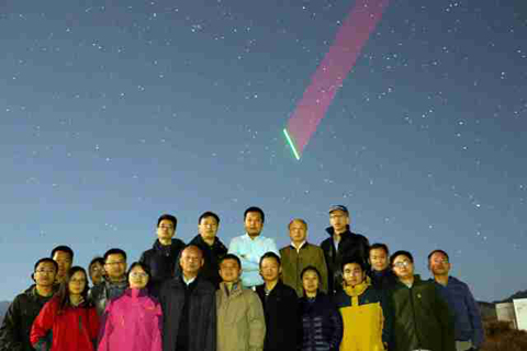 量子卫星与新疆南山站建立链路时工作人员合影留念。(中科院提供)