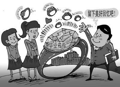 毕业戒指,听上去挺新鲜。这是中国科技大学模仿美国西点军校,为2014届毕业生打造的毕业礼物。据报道,中国科大共发放了5980枚戒指,钛钢合金,每枚造价大概几十元,正面刻有科大校名英文缩写“USTC”,背面刻有数字“2014”和四位数的编号,再加上一张收藏证书,每一枚都显得独一无二。