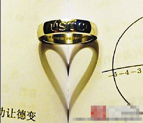 毕业戒指,听上去挺新鲜。这是中国科技大学模仿美国西点军校,为2014届毕业生打造的毕业礼物(见上网络截图)。据报道,中科大共发放了5980枚戒指,钛钢合金,每枚造价大概几十元,正面刻有中科大校名英文缩写“USTC”,背面刻有数字“2014”和四位数的编号,再加上一张收藏证书,每一枚都独一无二。