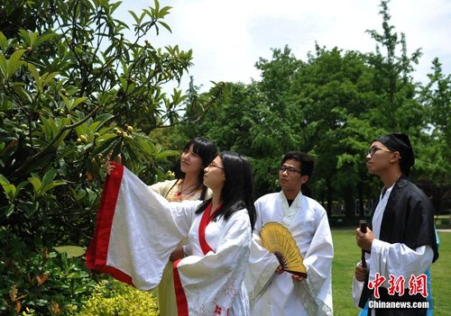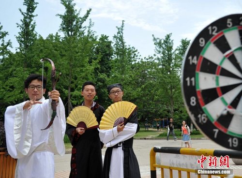 5月15日,中科大的学生们身着古装,上演真人“穿越”游戏。当日,位于合肥的中国科技大学举行“花开半夏,古装游园”活动。学生们穿上古装,参加“射箭”、“投壶”等游戏,古色古香又趣味无穷。