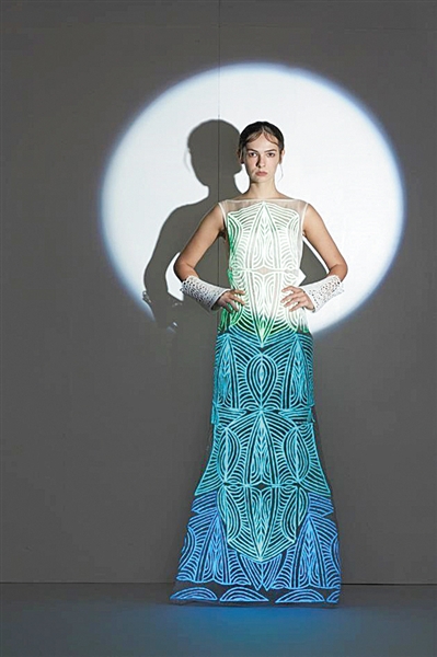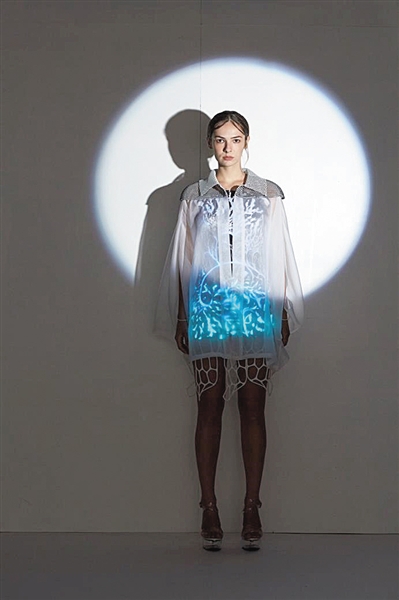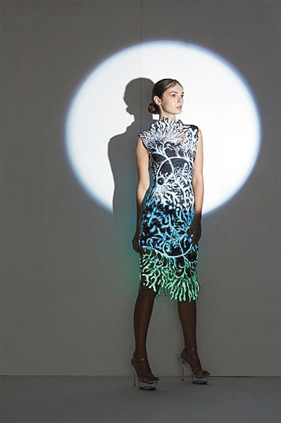 中国科技大学合肥微尺度物质科学国家实验室张国庆教授课题组,与北京服装学院年轻时装设计师李冬雪合作,将该分子转移印花到服装面料上。这组以《碰撞》为题的服装设计日前夺得2016“大浪杯”中国女装设计大赛总决赛金奖。(杨保国)