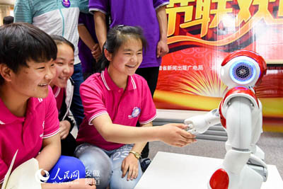 人民网合肥5月24日电(记者 苗子健)5月23日下午,青海湟源县30位孩子来到合肥,在中国科技大学校园内与机器人近距离接触,体验科技发展带来的进步。