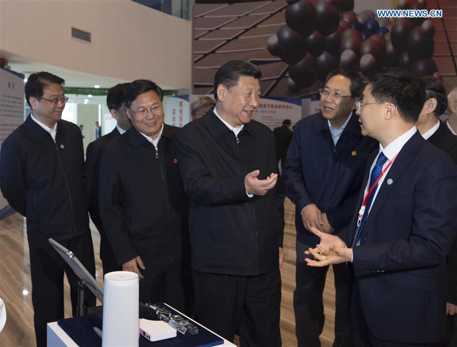 Chinese President Xi Jinping visits the Institute of Advanced Technology under University of Science and Technology of China in Hefei, east China's Anhui Province, April 26, 2016. Xi made an inspection tour in Anhui from April 24 to 27. (Xinhua/Li Xueren)