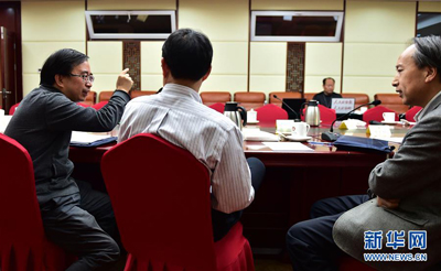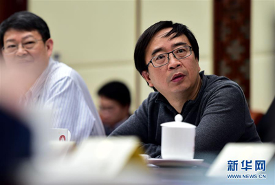 3月4日,全国政协委员潘建伟(右)与高鸿钧在小组讨论中交流。
