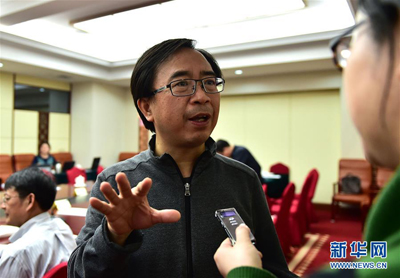3月4日,全国政协委员潘建伟在小组讨论间隙接受媒体记者采访。