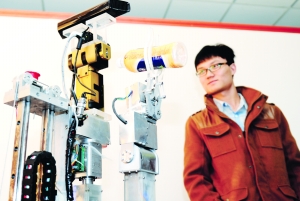 15日,机器人“可佳”把“用户”指定的物品带到其身边。当日,由中国科学技术大学自主研制的“可佳”智能服务机器人进行家政服务的公开演示。 (新华社发)