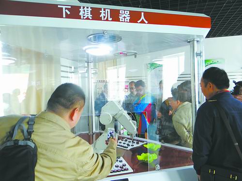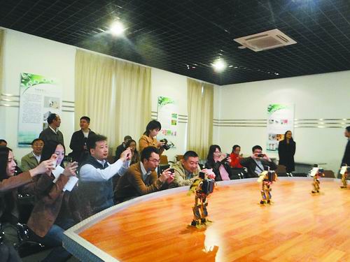7.合肥科学岛科技馆中的机器人舞蹈吸引了记者一行人的眼球。