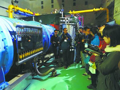 4.参观者正在聚精会神地观看中科大国家同步辐射实验装置。