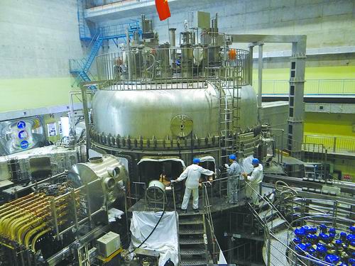 1.科研人员正在对“东方小太阳”EAST进行第六轮升级。