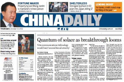 ChinaDaily 2013-10-17 头版 http://www.chinadaily.com.cn/china/2013-10/17/content_17038203.htm