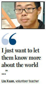 Liu and his fellow volunteers receive a university subsidy of 1,350 yuan ($212) per month. Besides teaching the assigned courses and doing other voluntary work, they also visit the students' homes on weekends.