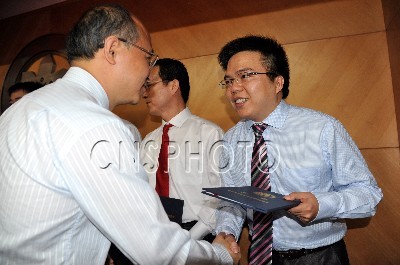 6月19日,中国科学院第三届人才发展主题日大会在北京举行,2013年中科院青年科学家奖揭晓并颁奖。图为中科院副院长张亚平院士为1981年出生的中国科学技术大学陈宇翱教授颁奖。